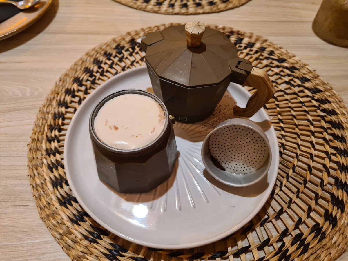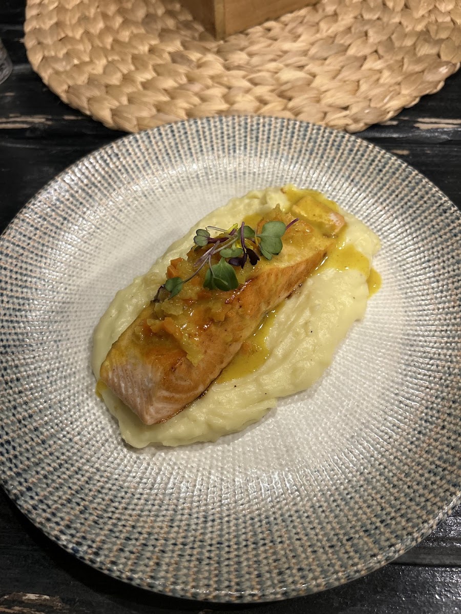 We loved this place! It’s is so different from the regular restaurants here. The interior has been designed with great taste and somewhat in a style of Maison de Monde. The food is also a little bit different and beautifully presented. The portions were perfect (not too big). We were given a small started with cream cheese and crackers. I had the salad with tuna belly, fresh tomatoes and crispy corn what just was very tasty. My partner had the salmon loin on a bed of mashed potatoes and a really nice vegetable sauce. The tiramisu dessert came in a little cafetière and was delicious. The waiting staff were all very helpful and friendly.